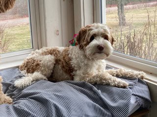 We live in CANADA, rural New Brunswick, outside of Sackville and about an hour from Moncton. Our household has just two humans and Spud, our pet doodle. We train and work. Many of my offspring’s favourite games are ball fetching, dock diving, rally-o, agility and being an emotional support dog. Recently we kept a pup, Gypsy who will have her litter in 2026.
